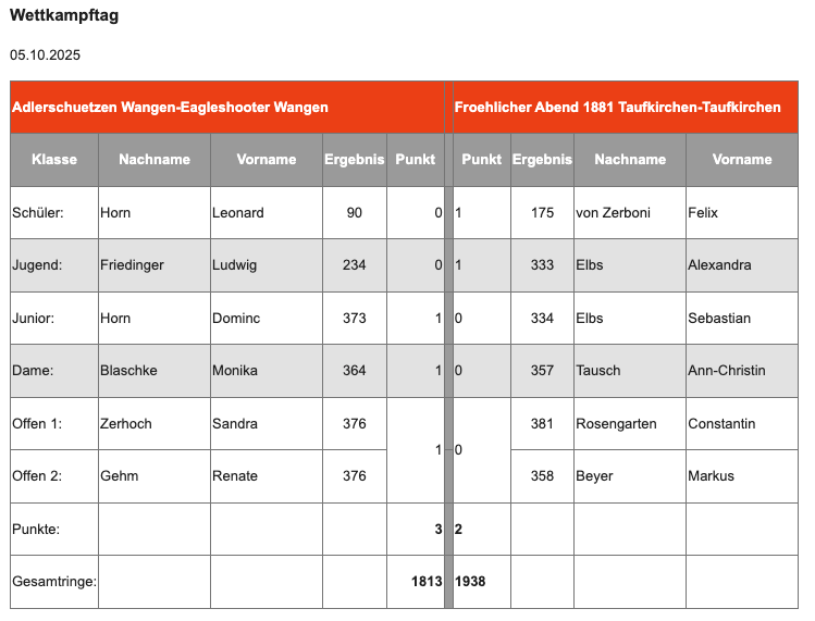 | Eagleshooter Wangen | Froehlicher Abend Taufkirchen | 3 : 2 Details |